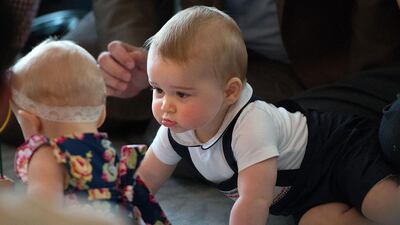 Britain's Prince George has playtime at the Government House in Wellington on April 9, 2014. The Duke and Duchess of Cambridge are on a three-week tour of New Zealand and Australia.