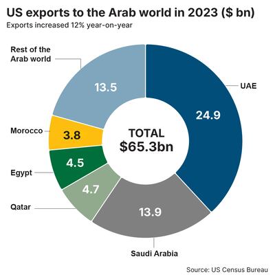 The UAE, in particular, has been the top export market for US goods since 2009 in the Middle East and North Africa region, according to data from the UAE embassy in Washington, DC. In 2023, record figures were posted, with bilateral trade between the two nations hitting $31.4 billion, it said.
