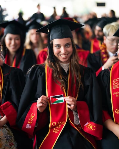 Both her parents, King Abdullah II and the queen, were in the US for the ceremony, where they watched the princess collect her degree in robes embroidered with the Jordanian flag.