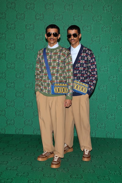 Mohammed and Humaid Hadban, who have become social media stars with their co-ordinated, colourful matching styles, have been spotted at shows across Milan Men's Fashion Week. The duo, whose TikTok account, Twins Hadban, has more than 1.2 million followers, are best known for their sartorial sensibilities, having tapped high-end luxury brands from Gucci to Kenzo and being featured in an American Eagle campaign.