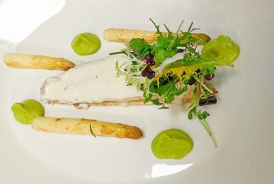 Chef-recommended dishes include: Saint-Jacque carpaccio with scallops, caviar and orange juice; slow-cooked veal tenderloin with tuna, capers and egg sauce; charred octopus with black olives and roasted cherry tomatoes; and sole meuniere with white asparagus.