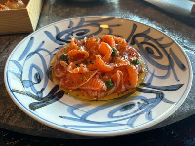 “Again this is like sushi, but not. It looks like a toast, but it's also not a toast. This is our crystal bread with raw fish on top. I don't think any other Japanese restaurant in Dubai has it,” claims Othman.