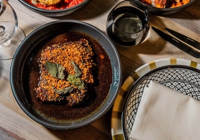 The black cod, sitting on top of spiced tomato sauce, is tender yet firm, its flavours bolstered by the bright acidity of the sauce. The roasted vegetable medley is vibrant yet smoky, with the eggplant makdous walnut adding textural flair.