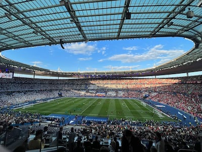 At the metro station, a woman helped fans buy tickets into central Paris. She didn’t speak English but used her phone to translate. The information board said the next direct train to Stade de France was on platform 11, so I boarded it.