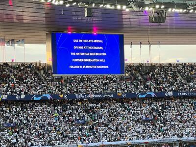 At 20:45, the stadium’s giant screen showed the following message: “Due to the late arrival of fans at the stadium, the match has been delayed. Further information will follow in 15 minutes.”