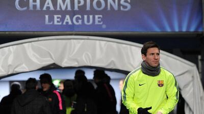 Images from Barcelona's team training session at the Etihad Stadium in Manchester on Monday night ahead of their Tuesday showdown with Manchester City in the first leg of their Champions League last-16 tie. Click the arrows above to scroll through the photos.