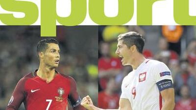 The National's Sport cover for the Wednesday, June 30 issue, featuring Cristiano Ronaldo and Robert Lewandowski ahead of Portugal and Poland's clash in the Euro 2016 quarter-finals.