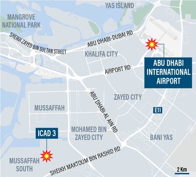 By 1pm, Abu Dhabi Police confirmed there had been an explosion in Mussaffah and a small fire at the airport. Police and state news agency Wam said that “small flying objects, possibly drones, fell in the two areas and may have caused the explosion and fire".