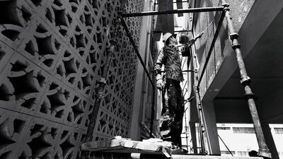 Patterns, textures, light and shade all combine to make a wonderful competing jumble of shapes in this image by staff photographer Delores Johnson. The figure, even though he is central in the frame, seems to be almost consumed by his surroundings. Only the scaffolding gives the image a structure, it feels like its not only holding the man aloft but also holding this image together.