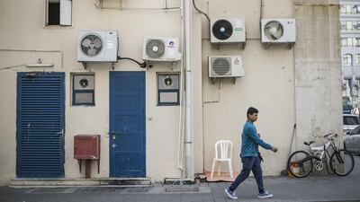 The architectural landscape is constantly changing in the UAE, and there’s very little left from my childhood. So when I photograph, I always look for the old stuff, be that a building or areas that take me back in time. The air-conditioning units in this scene reminded me of those old times, and I loved how they contrasted with the light background and blue doors. At first, I liked the emptiness of it all – the chair with no one sitting in it and the bike parked by the wall – but then people started walking by, and my perspective changed. The people gave it the feeling of movement and life. I waited for someone interesting, then this person wearing almost the same colour as the door passed, and I knew I had the shot.