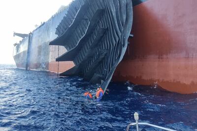 The explosion, filmed from the deck of the Panama-flagged supertanker Enola, shows large parts of the vessel fly through the air before crashing into the sea below.