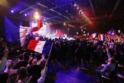 He held his first event at an exhibition centre in a suburb of Paris where thousands cheered every mention of reducing immigration and booed at every reference to Mr Macron.