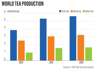 China has long been a major player in tea production, generating 2.5 million metric tonnes of tea in 2017 alone. Today, the country continues to lead the world in tea production.