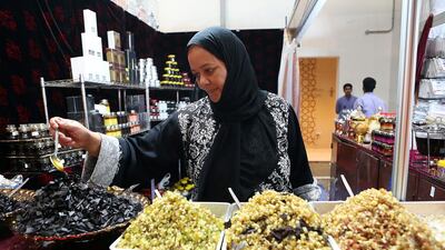 A pleasant whiff of musky concoctions hits you as soon as you enter the exhibition hall at Adnec. Let your nose guide you to Uma Sultan Al Yasse stall in Hall 8, where thick, syrupy mukhallats (perfume oil mixes) will delight your senses. You can choose from frankincense musk, oud ambar and lavender flowers, which will be distilled into 220-gram bottles for Dh100. They can be used directly on the skin or burnt at home to release fragrances.