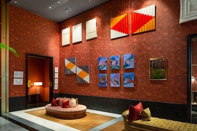 The first is displayed on the club’s first-floor landing and showcases pieces tied together by their experimentation with form, such as Shaikha Al Mazrou’s material-bending sculptures and Rana Begum’s geometric works made from reflectors. Other artists taking part in the show include Amba-Sayal Bennett, Dana Awartani, Maryam Hoseini, Fahd Burki and Kamrooz Aram.