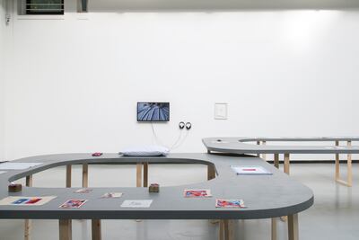 Abdel Hamid, who is from Ramallah but lives in Beirut, is known for his work combining traditional embroidery techniques with references to media images and art history to comment on politics and conflict. “The art world looks down on craftsmanship, yet there’s so much that can be done with embroidery as a medium,” he tells The National.