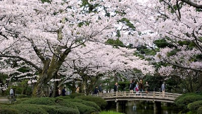 In winter, the garden’s tall trees are protected by conical canopies of suspended ropes that shield branches from the weight of snow, while in spring, many thousands of people gather to enjoy the short but spectacular bloom of cherry blossoms and shoot selfies in front of the two-legged Kotoji-Toro stone lantern that has become a symbol of the city.