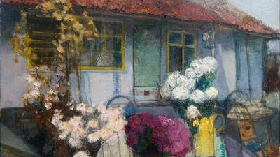 Catch the opening of Two Souls One Homeland. Ukrainian artists Grygori Sokyrynskyi and Igor Shipilin present landscapes that depict their homes, focusing on the simple aspects that are important to one's heart – water, trees, roads, mountains, houses and vineyards. Pictured: Chrysanthemums, House in Sokolinoye by Igor Shipilin