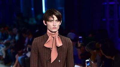The 1980s are officially back, with a happy mix of softly rounded blouson and boxy, square-cut jackets, in addition to high-waisted, pleated trousers. Worn rolled at the cuff, complete with floppy hair, it was Miami Vice all over again.
