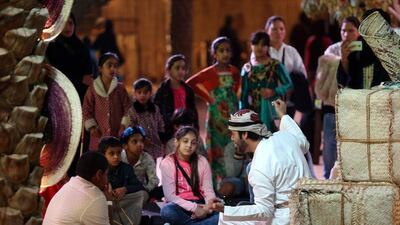 In each of the marine, desert and oasis zones, there is a corner dedicated to storytelling – or Kharaarif – where a narrator recounts traditional stories and fables covering everything from naughty, mischievous jinns to talking animals and bedtime stories. Told in a theatrical and engaging way, don’t be surprised to see children and adults from the audience adding their own twists to the tales. The stories are told in Arabic, but festival assistants can translate the stories. The sessions begin at 4.30pm and continue every hour until 10pm.