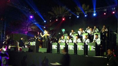 The Abu Dhabi Big Band provided the soundtrack to the opening party of the Abu Dhabi Film Festival 2012, set in the grounds of the Emirates Palace last night. Alongside big-band classics, including a few renditions of pop hits and a whole lot of buffet food (including some rather excellent peppery tuna steak), there was even time for a performance from the UAE-based oud maestro Kamal Mussallam, followed by some DJ action (and yes, as per the rule, I Gotta Feeling was played) that went on into the wee hours. Some of those engaged on the dancefloor late on might be hanging their heads today, however, as there were some pretty wild shapes being thrown.