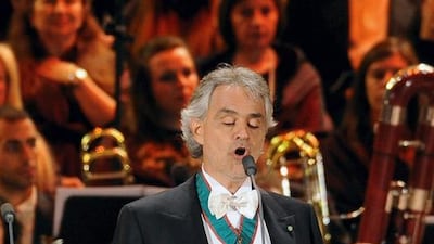 Classical crossover star Andrea Bocelli will debut his new tour in the UAE. The Italian tenor will kick off his Cinema World Tour at Yas Island's du Arena on April 22. The all-seated concert is Bocelli's third appearance in the capital in seven years and will promote his 15th studio album, Cinema, a collection of film themes including Doctor Zhivago, The Godfather, Gladiator and Breakfast at Tiffany's. "With the album Cinema, I'm fulfilling a wish that I've harboured for decades," said Bocelli, who has sold more than 80 million records. He last visited the Emirates in 2013. An exclusive du pre-sale starts today at noon, with a flash pre-sale at noon tomorrow. Register at info.thinkflash.ae/BocelliUAE. General tickets go on sale at noon on Wednesday, at www.ticketmaster.ae and Virgin Megastores. – The National staff
