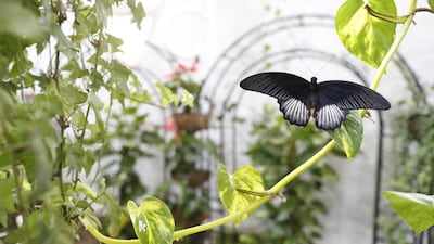 More than 120 types of indoor shrubs, plants and flowers, all grown at Akar’s nursery in Al Ain, vie for space with the butterflies. Vine tendrils drape down from the ceiling and intertwine with brightly coloured chrysanthemums, petunias, geraniums and more. Thanks to the network of walkways, which meander through vegetation and water features, it’s easy to imagine you’re in the depths of a tropical rainforest.