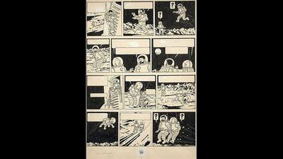 A rare drawing from one of Tintin's most famous comic books, Explorers on the Moon, was sold on the weekend for $1.64 million. The record sale for a single cartoon drawing was reached in Paris according to the auction house Artcurial. The original drawing in Chinese ink by Belgian artist Georges Remi, who wrote under the pen name of Herge, is from a book first published in 1954. The sketch shows Tintin, his white dog Snowy and his friend Captain Haddock in spacesuits, walking on the moon for the first time and looking at the Earth. The popular comic book The Adventures of Tintin has been translated into more than 70 languages, with tens of millions of copies sold. The adventure series was also made into a movie by Steven Spielberg in 2011. — AP