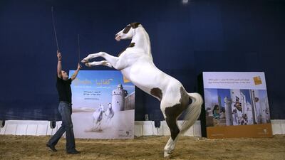 • Nacarado, a Spanish Purebreed stallion, reaches out to his caretaker. Silvia Razgova / The National