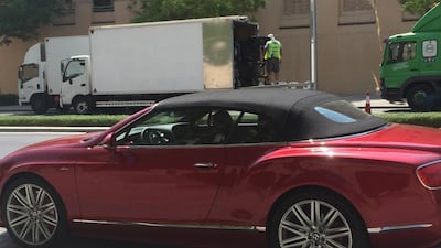 Roads around The Boulevard in Downtown Dubai were closed off on Saturday morning while the crew of new Jackie Chan movie Kung Fu Yoga filmed car-chase scenes. As our photos reveal, audiences can look forward to an expensive-looking chase involving a Lambourghini, Bentley and Rolls-Royce. Onlookers also reported a car with what looked like Dubai Police markings during the filming. A bus labelled "Stunt" was also parked among the cars and trucks carrying crew and equipment.