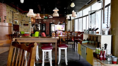 The Scene’s expansive interior is filled with vintage wooden tables and second-hand chairs. There’s a 1950s-era mock living room at the front – complete with a fireplace and vintage sewing machine – that you’re more likely to find in a crazy old aunt’s house than a trendy Dubai eatery. The walls are plastered with comic strips, which add to the playful vibe. The entire space – eclectic, colourful and inviting – works and instantly makes you feel welcome.