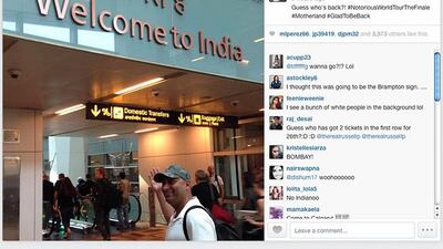 Seven hours ago Peters posted a pic online of himself arriving in India to kick off a four date tour including Delhi, Mumbai and Madras.