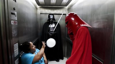 Star Wars fans get excited for the world premiere of the newest film Star Wars: Episode VII — The Force Awakens by donning their best cosplay costumes during the event.