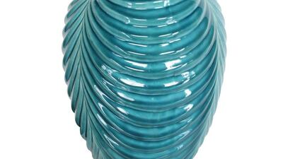 Opt for aquatic tones to liven up your abode. The bright teal colouring and glossy finish of this ribbed Crackleglaze vase from The Contemporary Home is sure to make it a focal point of any space.