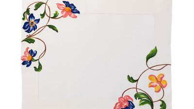 The 50-piece collection is inspired by vintage ceramics, textiles and glassware from the north of Italy, and is characterised by its high-quality craftsmanship. Hand-painted and hand-embroidered, this linen placemat was created in collaboration with Atelier Houria Tazi and made in Morocco. The natural motif and playful pops of colour will make it a welcome addition to any table setting.