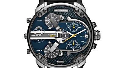 Denim has been synonymous with Diesel since the get-go, and this season, it’s the key component of men’s accessories from the brand. Best buys include two contemporary timepieces called the Stronghold and Mr Daddy. The latter (pictured) comes in cool steel grey with a blue denim dial and brushed metal case. It measures 57mm by 66mm and is water-resistant to 3 ATM. All watches in the range, including a version for ladies, are available at Paris Gallery outlets. Prices on request.