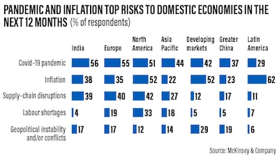 Respondents selected inflation as one of the top two most-cited risks to domestic growth, behind the pandemic.