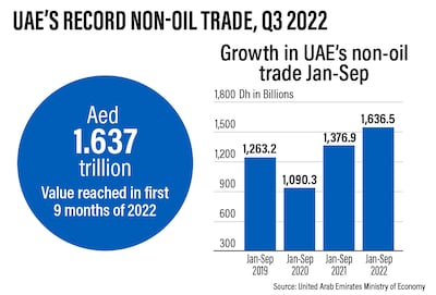 The value of non-oil foreign trade, a central plank of the UAE's efforts to diversify its economy, grew to Dh583 billion at the end of the third quarter of this year, the highest-ever quarterly trade figure for the country.