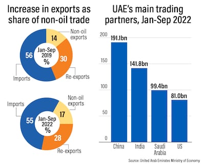 The latest foreign trade figures reflect the country's "agenda to cement deeper, stronger trade ties with key nations around the world", Dr Al Zeyoudi said, adding that Cepas with Indonesia and Israel would come into force soon and negotiations with other major economies will conclude.