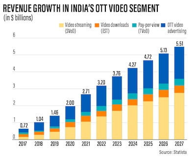 “The market for providing video streaming services in India is highly fragmented, with more than 40 streaming players vying for the customer’s wallet,” says Mr Maitra.