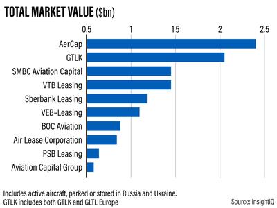 More than half of the active commercial aircraft fleet based in Russia are leased aircraft, many of which are managed by lessors based outside the Russian Federation, consultancy IBA said in a report examining which aircraft leasing companies were likely to be most at risk as a result of the conflict and ongoing sanctions.