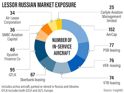 "AerCap is likely to be the most exposed to hard-hitting economic sanctions, with 152 active, parked and stored aircraft across Russia and Ukraine," IBA said.