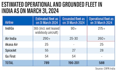 Air India, privatised in January 2022 with its handover to Tata Sons, is also facing supply chain issues, with more than 40 planes short of parts. Capa expects that up to 30 of Air India's planes will be grounded at the end of March.