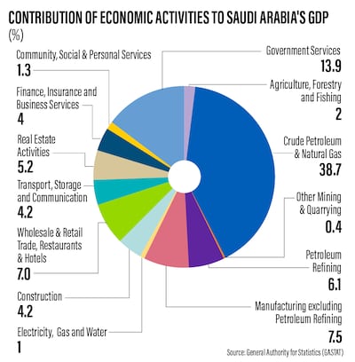 The kingdom’s GDP at current prices stood at 1.05 trillion riyals ($280 billion) in the second quarter of this year, with crude petroleum and natural gas activities contributing 38.7 per cent to the national economy.