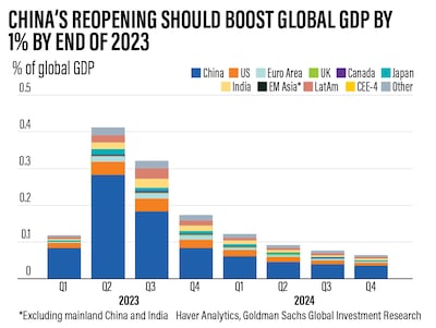 The reopening of China’s economy and a full recovery in the country's domestic demand may raise global output by around one per cent in 2023 and lead to a rally in oil prices, according to a report by Goldman Sachs.