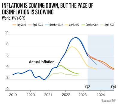The IMF expects global inflation to decline to 6.8 per cent this year, from 8.7 per cent in 2022, a 0.2 percentage point downwards revision for 2023. It expects inflation to fall further to 5.2 per cent in 2024.