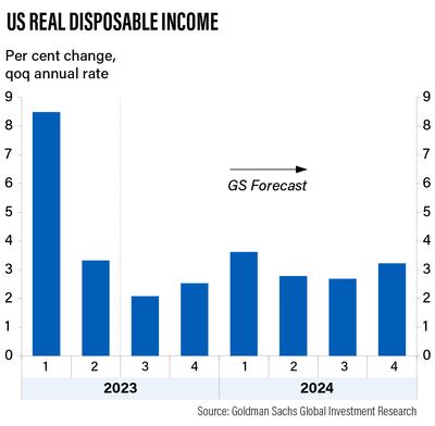 “This change reflects continued encouraging inflation news, a favourable real income outlook and the decline in the jobs-workers gap to just above its pre-pandemic level,” said Jan Hatzius, chief economist and head of research at Goldman Sachs.