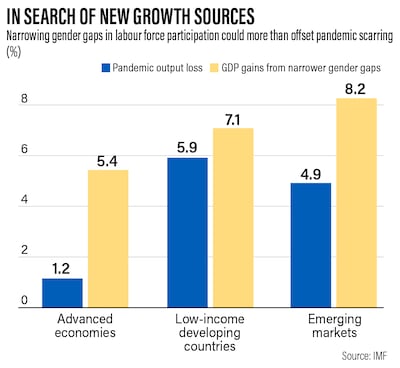 Raising the rate of female labour force participation in emerging and developing economies by 5.9 percentage points equates to the average amount by which the top 5 per cent of countries reduced the participation gap during 2014 to 2019, the IMF said.
