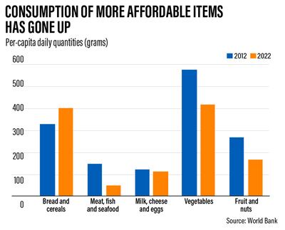 It said Lebanese households were consuming a third of the amount of (mostly imported) meat and seafood in 2022 compared with a decade earlier, while the consumption of more affordable bread and cereals has risen by more than 20 per cent.