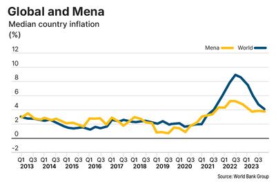 Meanwhile, inflation in the region is easing overall, reflecting a broader global trend in tamping down prices. Inflation is projected to decline to 2.2 per cent in the Mena this year after a decrease to 3.6 per cent last year.